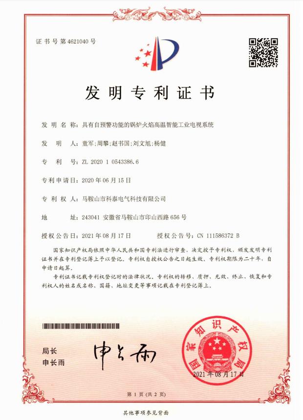 下一個(gè):一種高溫監(jiān)控鏡頭裝置發(fā)明專利證書(shū)